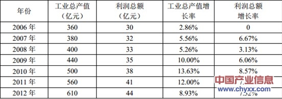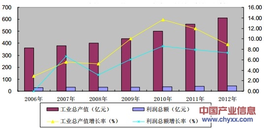 2006-2012年低壓電器行業(yè)工業(yè)總產值、利潤總額增長趨勢