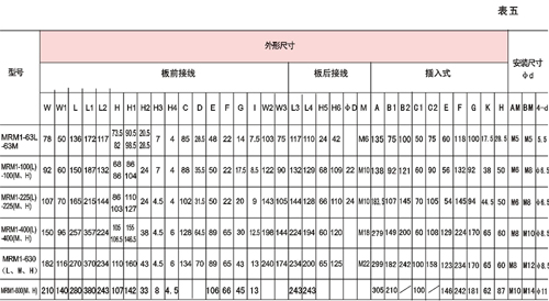 | MRM1-630L | 400、500、630 | 100 | 65 | 42 | 1000 | 2500 |